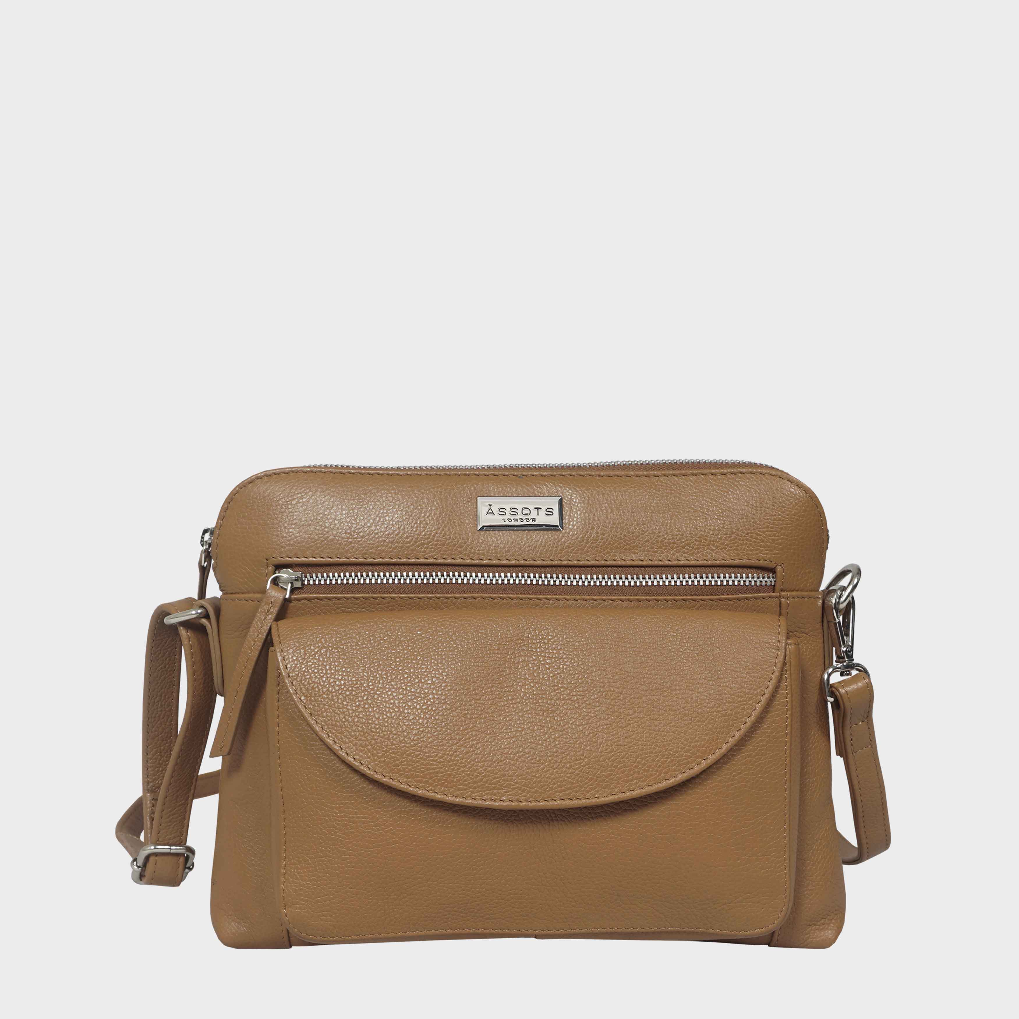 The Assots multi-functional ‘Agatha’ crossbody bag is beautifully handcrafted from natural full grain leather. Effortlessly stylish this real leather crossbody features a cotton webbing or leather shoulder handle and four zip pockets to organise your essentials. when you’re out and about. Ideal for all occasions the ‘Agatha’ is a must-have addition to your collection of luxurious leather handbags. Secured zip top closure opens to a fully lined and roomy interior. Pure cotton fabric lining used in natural beige making it a free from plastic product. Secured two zip pockets at the front to slide in your essentials such as face covering smart phone and more. Back zip pocket for quick and easy access to your essentials. Adjustable long soft leather shoulder strap handle for a comfortable carry. Lightweight. Adorned with the inimitable Assots London clean finish silver metal logo at the front. Fittings colour: Silver Nickel Composition: Body: 100% Genuine Leather. Lining: Pure Cotton. DISCLAIMER : All pictures shown are for illustration purpose only. Actual product colour may vary due to different ambience lighting or the screen display settings