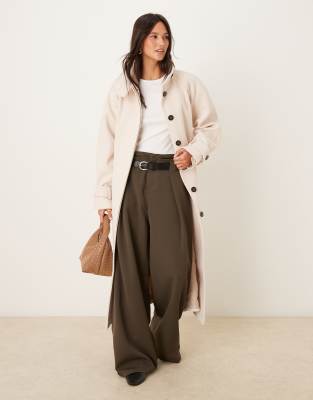 Coats & Jackets by ASOS DESIGN Funnel neck Button placket Belted waist Side pockets Longline cut Regular fit