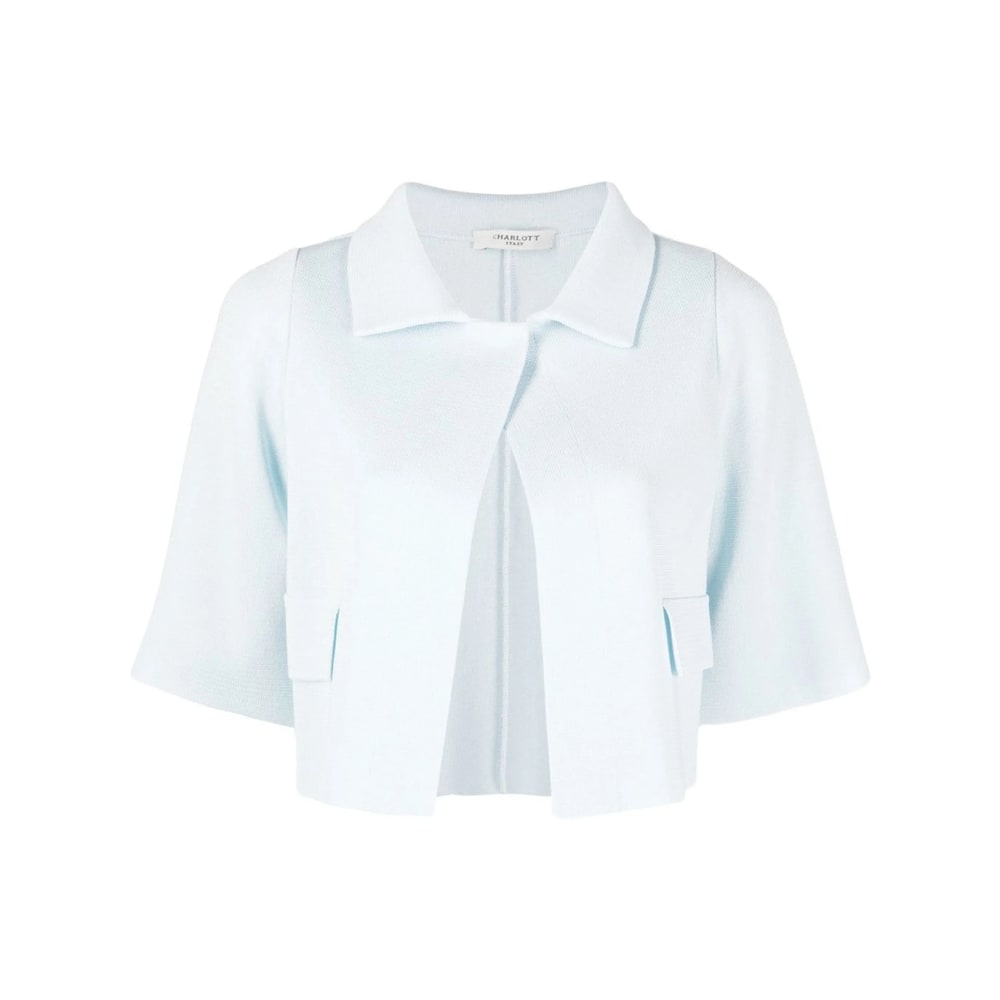 light blue cotton blend knitted construction classic collar short sleeves concealed front fastening