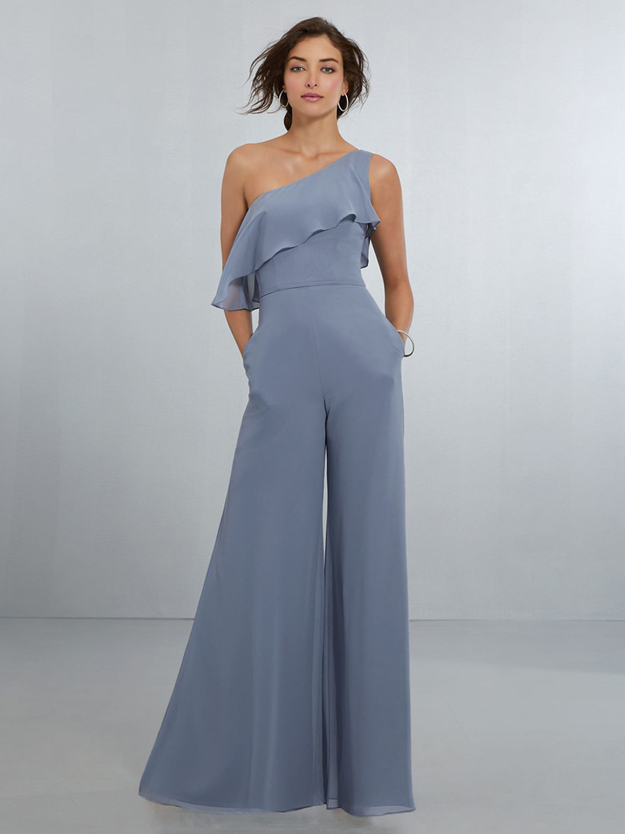 Chiffon Bridesmaid Dresses Jumpsuit One Shoulder Asymmetrical Wedding Party Dress & Wedding > Wedding Party Dresses > Bridesmaid Dresses > Long bridresmaid dress