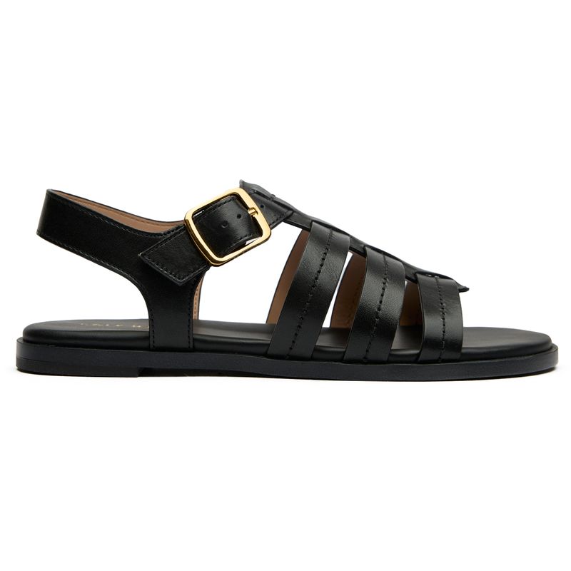 The Cole Haan Flynn sandals blend timeless elegance with practical comfort in a sleek black design. Crafted with premium leather uppers these feminine flats feature an adjustable buckle for personalized fit. The molded footbed provides all-day support while the Cole Haan branded detailing adds a touch of understated luxury. With durable rubber soles offering reliable traction the Flynn sandals deliver the perfect balance of sophisticated style and walkable comfort for your summer wardrobe.