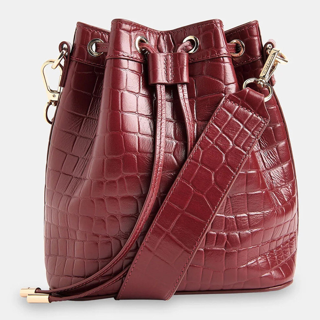 Dark Red Giulia Croc Bucket Bag