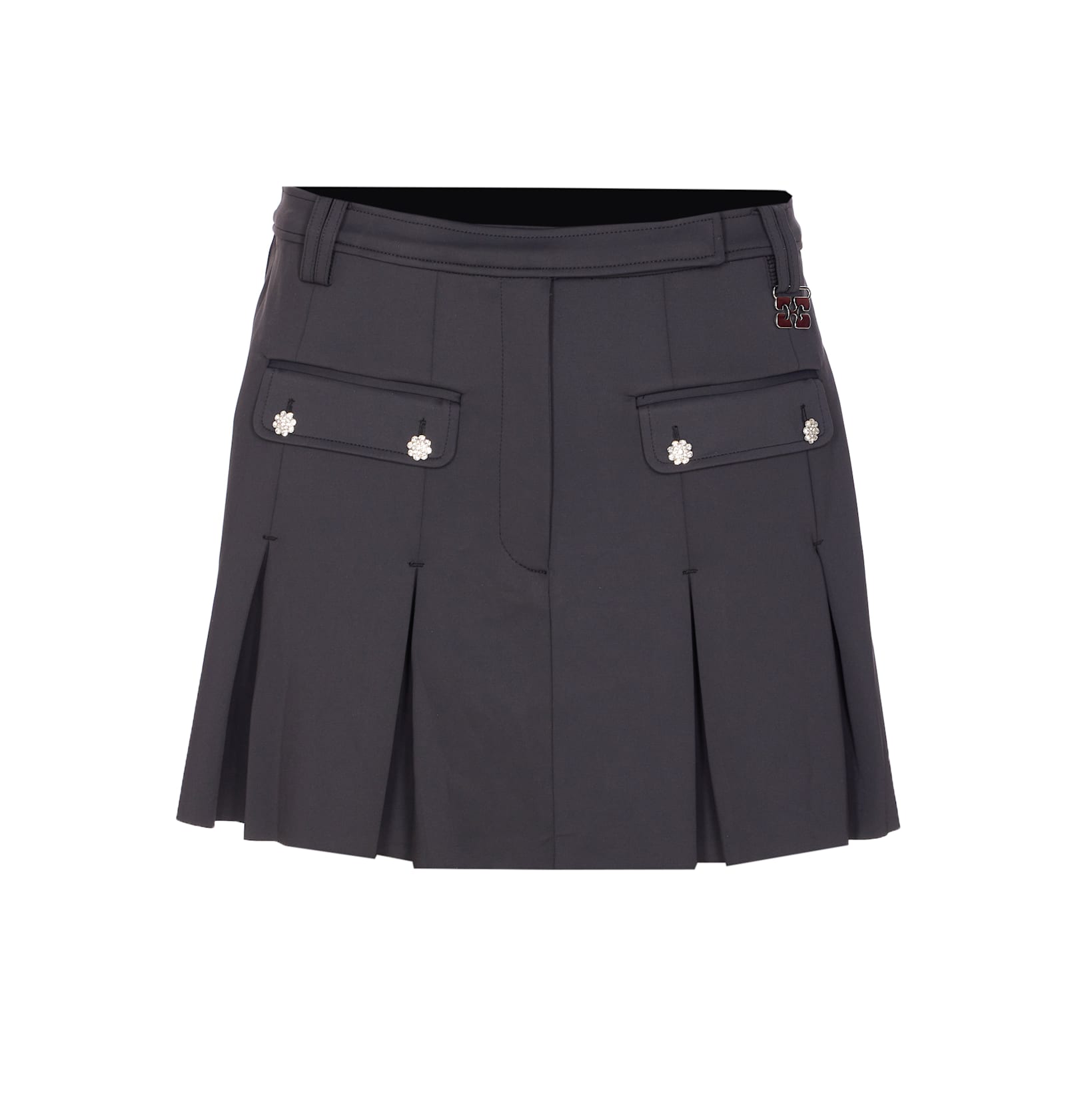 Ganni black Scuba Neoprene skirt, hook and zip closure, pleated effect, charm logo detailComposition: 80% Recycled Polyamide, 20% Elastane