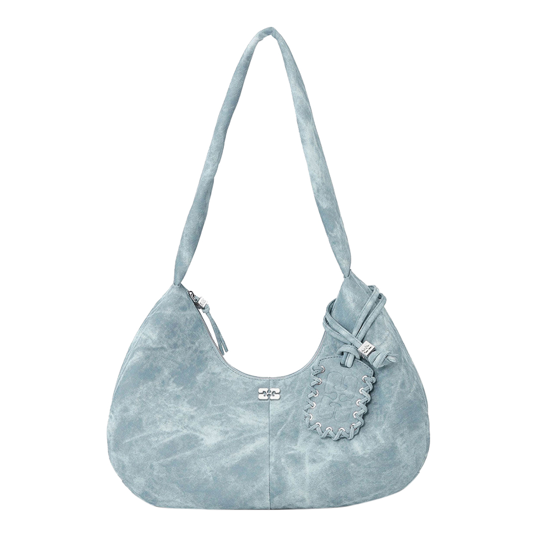 Blue Hobo Medium Bleached Ganni Bou BagBleached Leather Finish – Shoulder Strap – Zip Closing – Silver-Tone Ganni Butterfly Logo – Mirror Hangtag – Inside Zipped PocketDimensions: 43 x 29 x 15 cmComposition: 58% Recycled Polyester 42% PolyurethaneColour: Blue