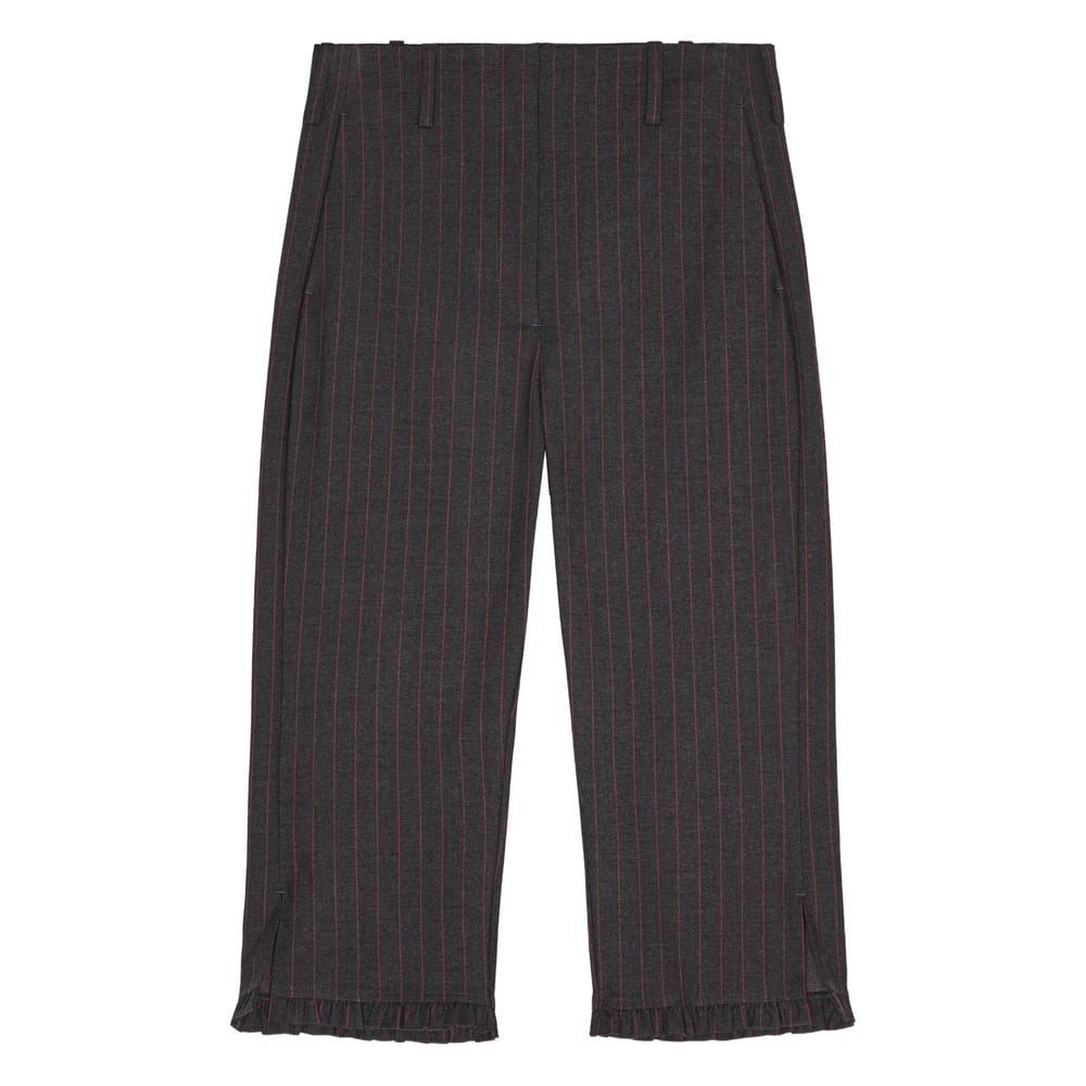 black concealed front fastening two side slit pockets rear jetted pocket belt loops