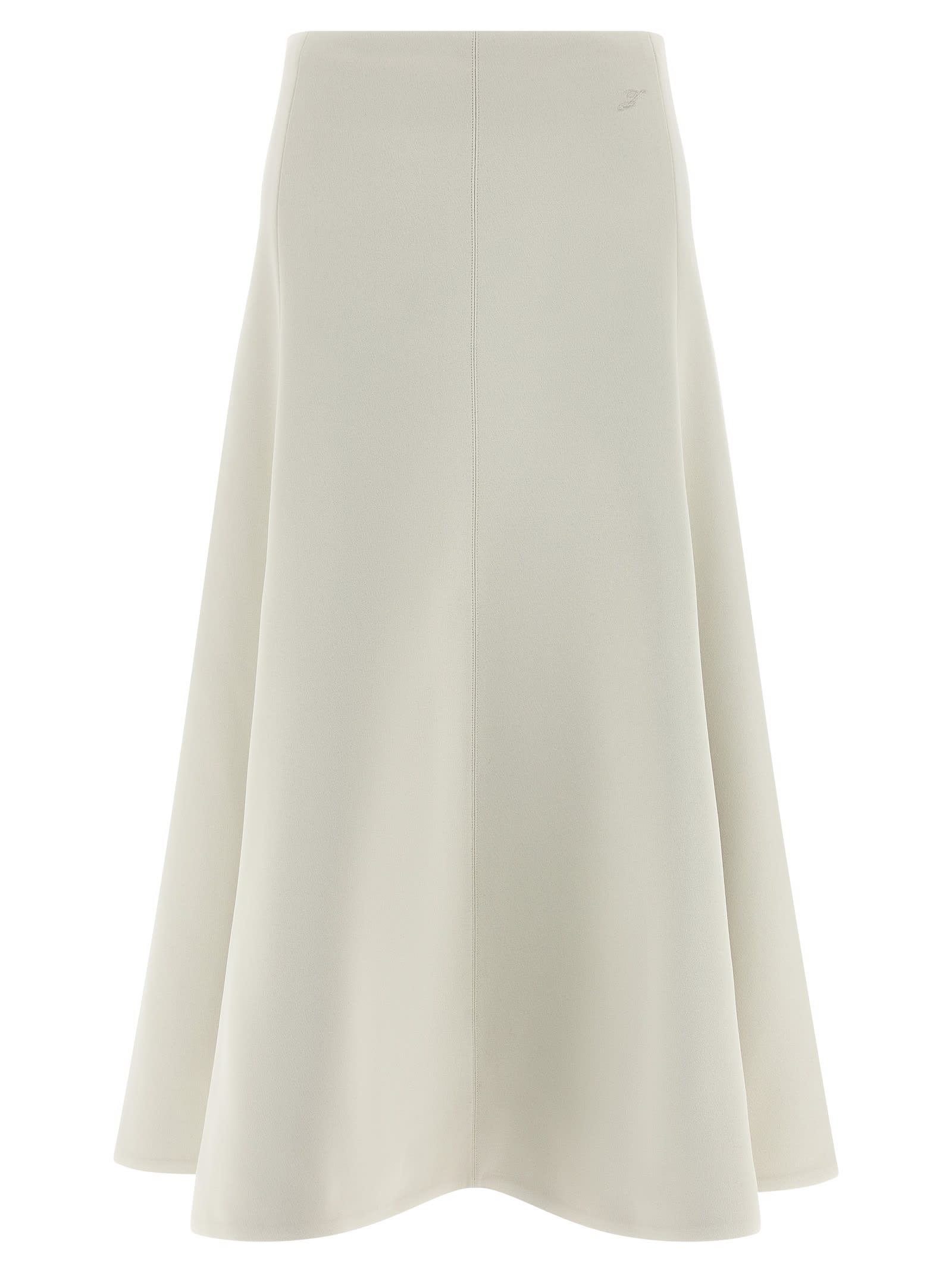 ‘La Jupe Triangle’ midi skirt with half-wheel style, front logo embroidery, side zip and hook closure. Composition: 70% polyester, 30% viscose