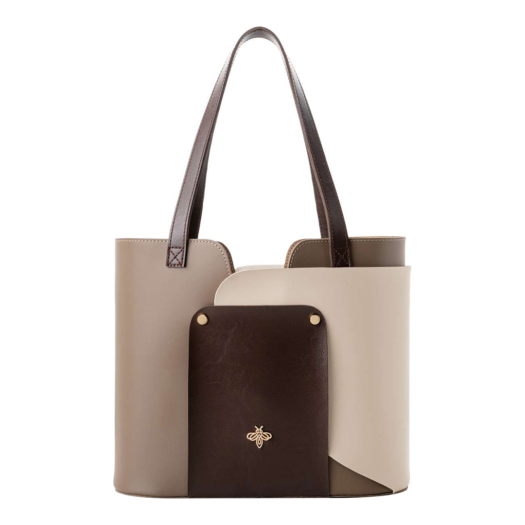 Mink/Cream Tote BagNumber of Interior Pockets: 3Composition: 100% Polyvinyl Leather Colour: Mink, CreamDimensions: Length: 30 cm Width: 12 cm Height: 26 cm, Long Strap Length: 52 cm, Drop Length: 25 cm