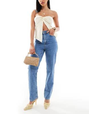 Jeans by Miss Selfridge Straight fit High rise Stretch-back waistband Concealed fly Functional pockets