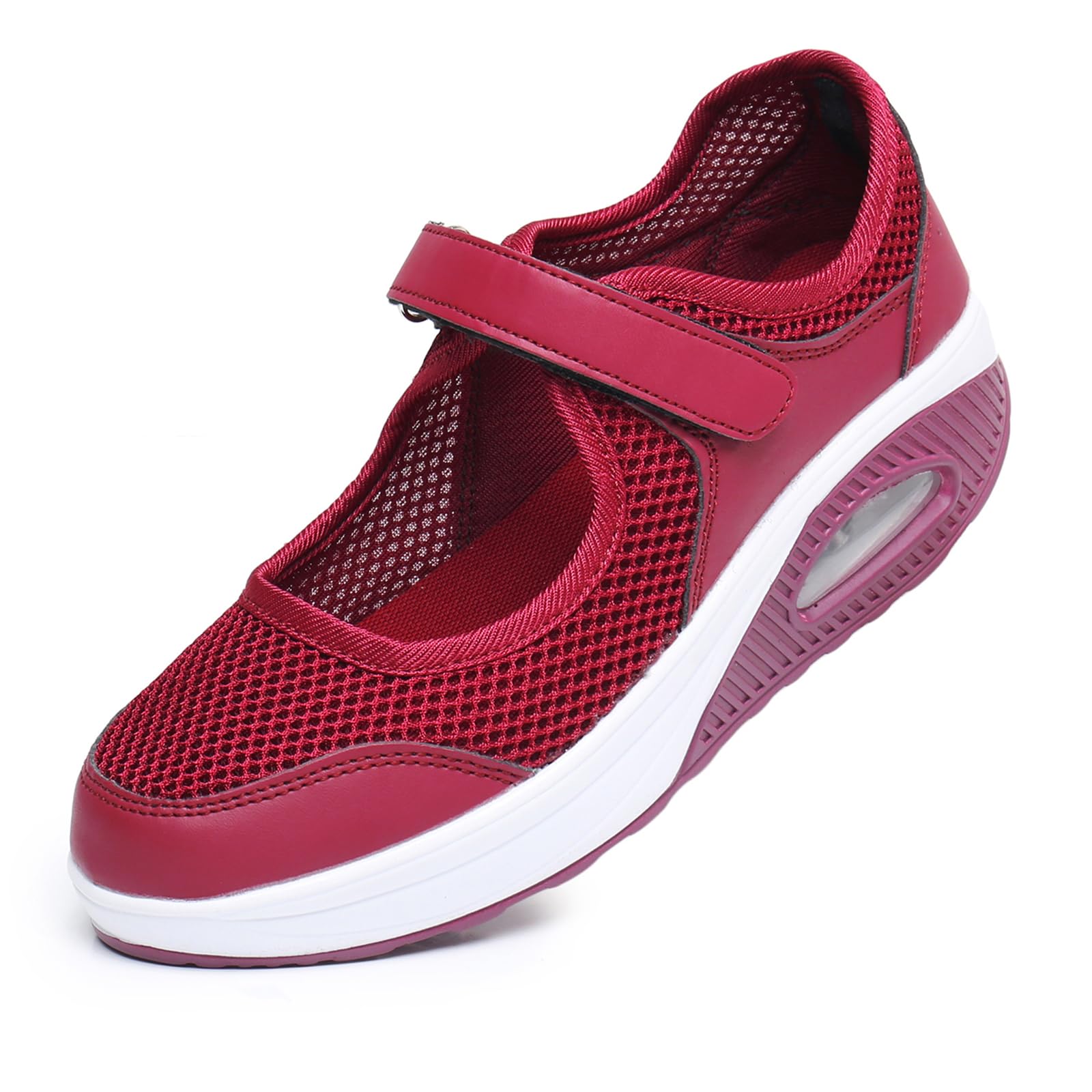 MISSRAIN Ladies Casual Walking Shoes Adjustable Strap with Hook and Loop Closure Comfortable Sneakers for Work Women Air Cushion, 699Red 40