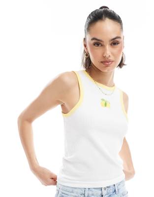 Tops by Pieces Crew neck Lemon embroidery Contrast trims Racer back Slim fit