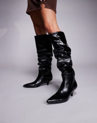 Shoes by Public Desire Knee-high style Ruched cuff Pointed toe Kitten heel