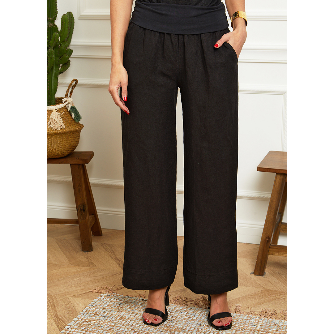Classic with a twistThese Valencia Linen trousers have a loose fitThick waistbandPocketsColour: blackComposition: 100% LinenCare: machine wash
