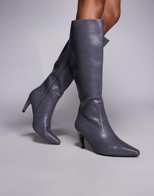 Shoes by Simmi Wide Fit Knee-high style Zip-side fastening Pointed toe Mid-height heel Wide fit