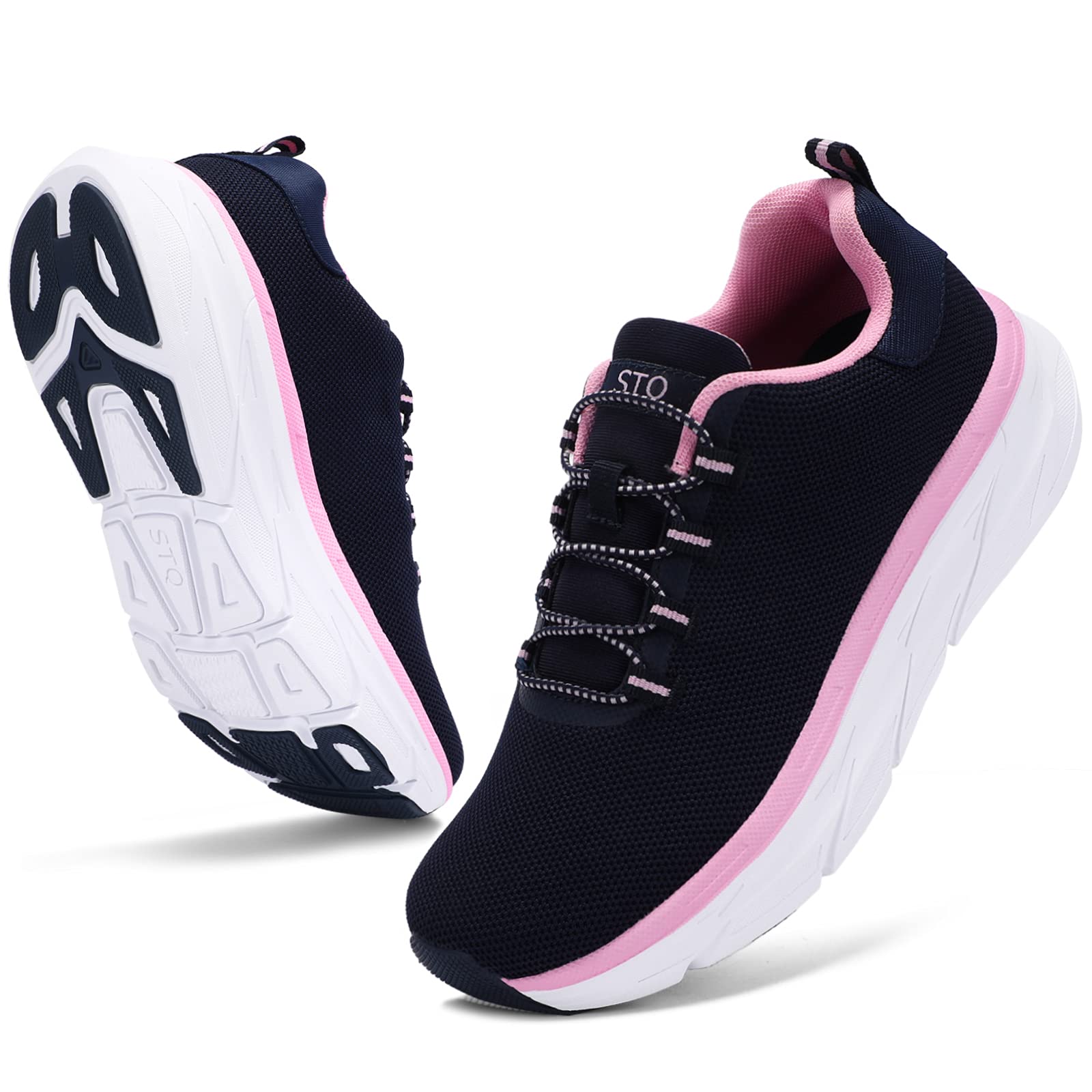You’ll be ready to take on anything from running errands to walking to your local park with womens trainers. In a simple slip-on style for quick and easy wear, these closed-toe walking shoes for women feature a breathable mesh upper with soft insole to keep your feet nice and comfy. Memory Foam cushioned insole of these running shoes for extra comfort. With a simple and versatile look that goes with tons of outfits, you can slip on these womens sneakers with joggers or shorts to create a relaxed everyday look or add them to a dress for laid-back style.