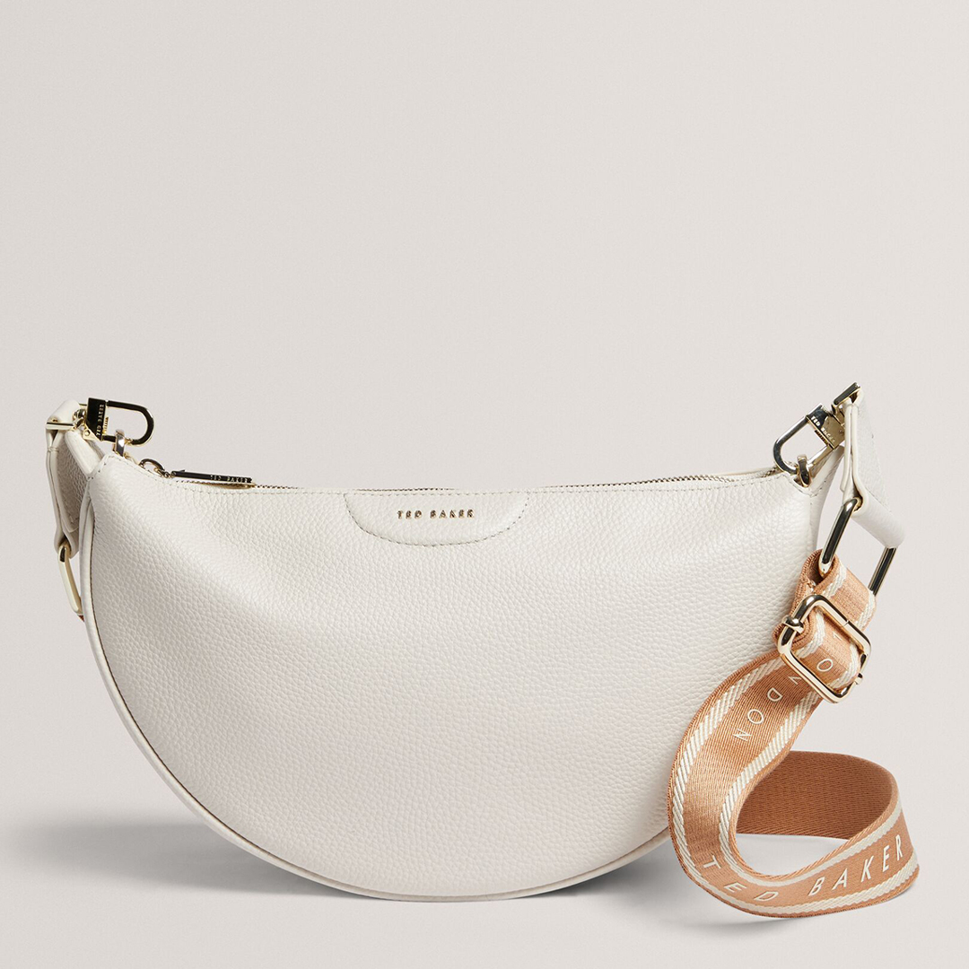 Adjustable crossbody strapZip closureHalf-moon shapePlease refer to labelWhitePlease refer to label