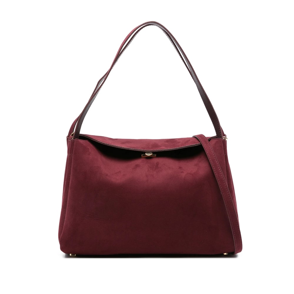 dark red suede texture double top handle magnetic fastening fold-over flap detachable shoulder strap