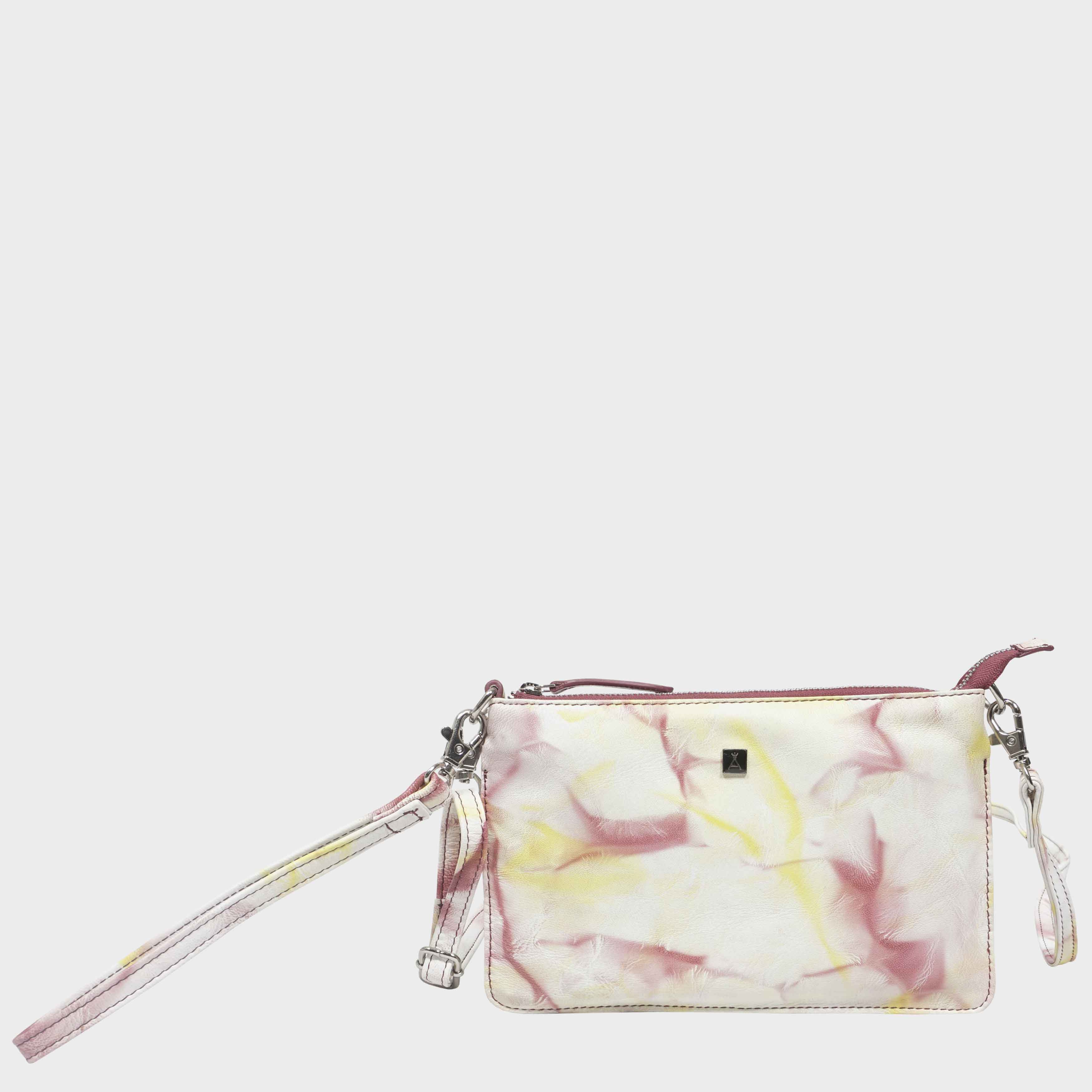 Indulge in the vibrant beauty of ‘TODD’ with this leather crossbody wristlet bag. Each piece is beautifully handcrafted and showcases a unique tie-dye print. The finished leather will naturally form a twisted pleated texture adding a touch of interest. With a zip top closure and both wristlet and shoulder handles this bag offers practicality and style. Secured zip top closure opens to a fully lined roomy interior. Lined with Matching pinkish red fabric. Dog hook detachable shoulder and wristlet handles. Adjustable leather should handle for a comfortable carry. Full-width back zip pocket to slide in your essentials such as car keys house keys and more. 6 internal credit card slots equipped with RFID protection to prevent unwanted scans and modern day theft. Internal zip pocket for your smart phone. Internal slip pocket for your face covering. Featuring the iconic Assots London black enamel logo this tie dye bag is a true standout piece. Fittings colour: Antique Brass. Composition: Body: 100% Genuine Leather. Lining: 100% Polyester.DISCLAIMER : All pictures shown are for illustration purpose only. Actual product colour may vary due to different ambience lighting or the screen display settings.
