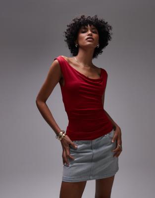 Tops by Topshop This top is crafted from soft, stretchy jersey and features a versatile plain design. This sleeveless style has a cowl neck and is cut with a slim fit.