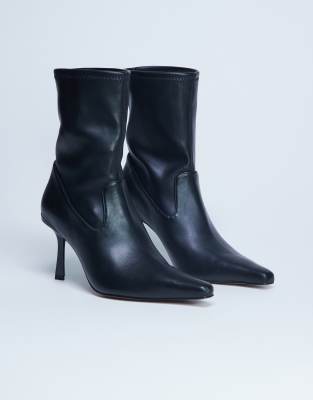 Shoes by Topshop These boots are crafted from a smooth, matte fabric. They feature a pull-on design, pointed toe and high point heel.