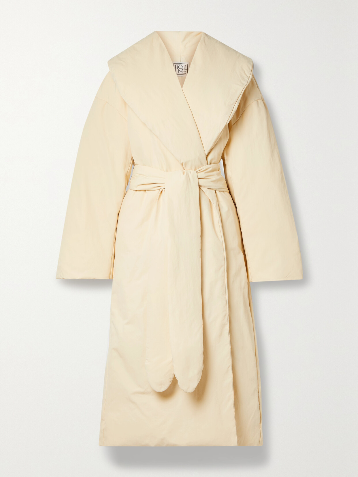 Totême’s coat has an enveloping shape that ensures comfortable layering, even over your chunkiest sweaters. Made from recycled shell that’s equally durable and lightweight, it’s padded with down for insulation. Tie the tonal belt around your waist to temper the fit.