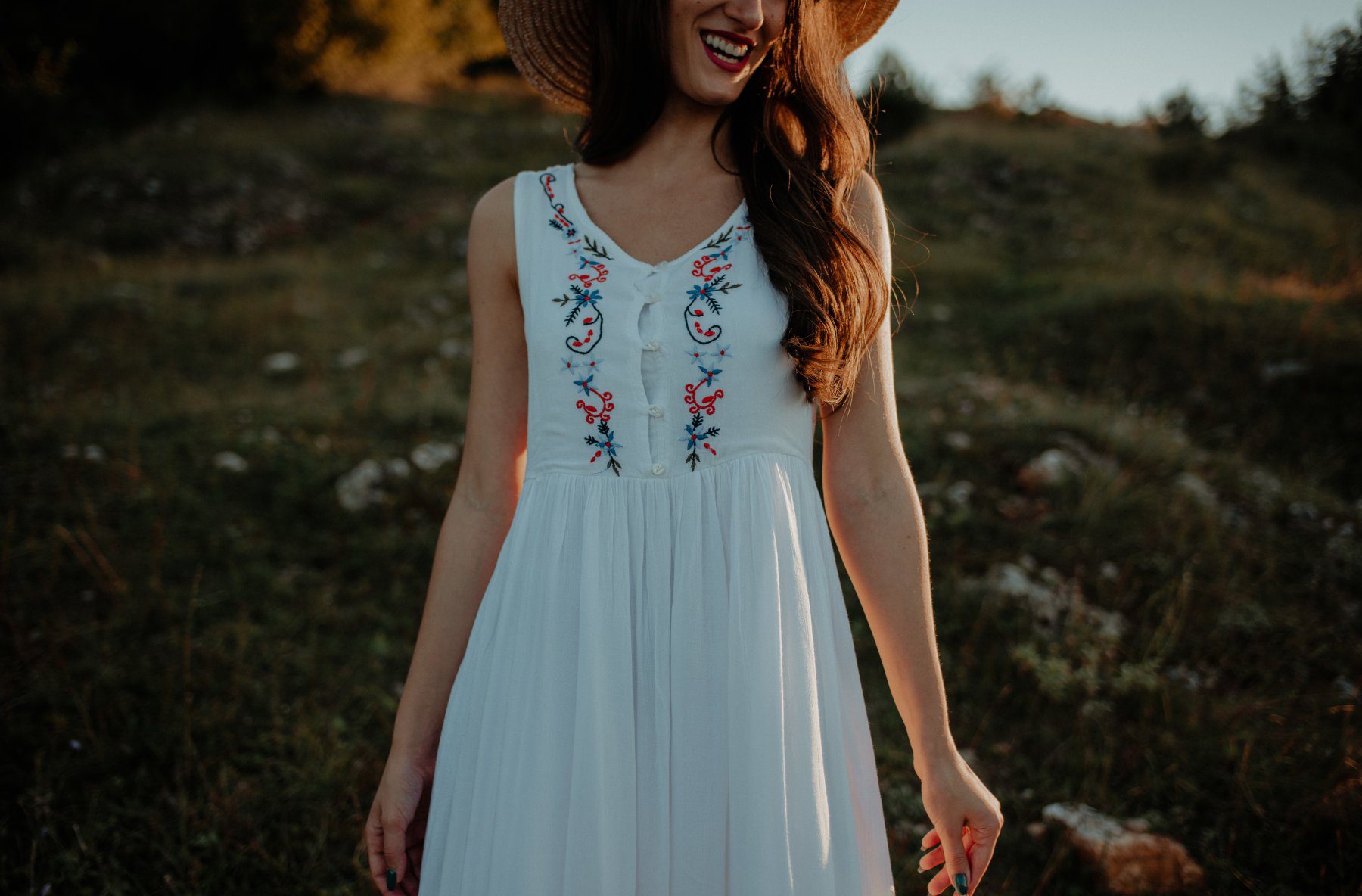 This is the dress I grab when I want to look like I’ve made an effort without actually suffering for it. That embroidery running down the front does all the heavy lifting, so the rest of the outfit can be incredibly simple. Flat tan sandals, maybe a simple gold necklace, done. I love this style for informal garden parties and outdoor weddings where you want to look lovely without accidentally turning up in something that reads as too formal. The fabric here is important too — you want something with a natural feel, cotton or a cotton blend, something that moves properly and doesn’t look plasticky in sunshine. A stiff synthetic in white is a deeply unforgiving thing and I say that from experience.